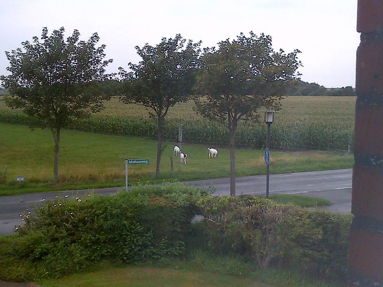 Die Anreise erfolgte mit dem IC von Berlin Hbf bis Niebüll. Von hier ging es mit dem Rad nach Dagebühl, wo wir 3km vor der Fähre einen Plattfuß hatten. Glücklicherweise erreichten wir schiebend die Fähre. In Wyk ließen wir dann erst einmal den Platten reparieren. Nach einem kurzen Rundgang und einem Einkauf fuhren wir zur Ferienwohnung nach Alkersum (Blicke aus der Ferienwohnung 1, 2, 3), wo kein Restaurant und nur ein Bäcker zu finden waren. Dermaßen frustiert, besichtigten wir die Ferienwohnung, die sich aber als großzügig und angemessen herausstellte. Die Vermieterin beschrieb uns dann einen "Imbiss" in der Nähe (Midlum), der sich als Geheimtipp herausstellte. Gesättigt durch ein Schweinefilet, das eigentlich ein Schnitzel sein sollte, und Nordseekrabben auf Spaghetti an Rucula-Pesto gingen wir dann ins Bett.
